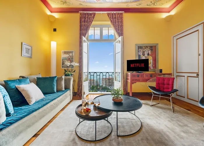 海辺のベッドルーム2室のマントンLe Coq Tersling - Parking - Ac - Wifiアパートメントは海の景色を望み、ボリゴ川から徒歩で7分の場所に位置しています。